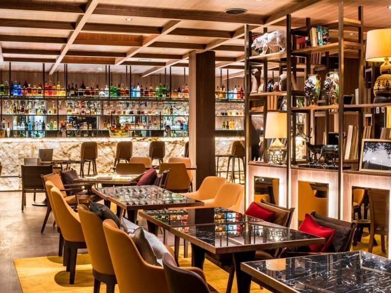 Wenn der Tag sich dem Ende zuneigt, werden erstklassige Weine aus der Weintheke geholt und Digestifs lockern die Stimmung auf. Ein Ort, wo man sich trifft, selbst als Nichtraucher.